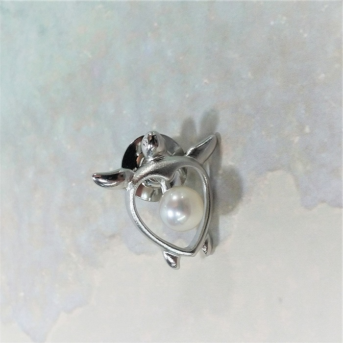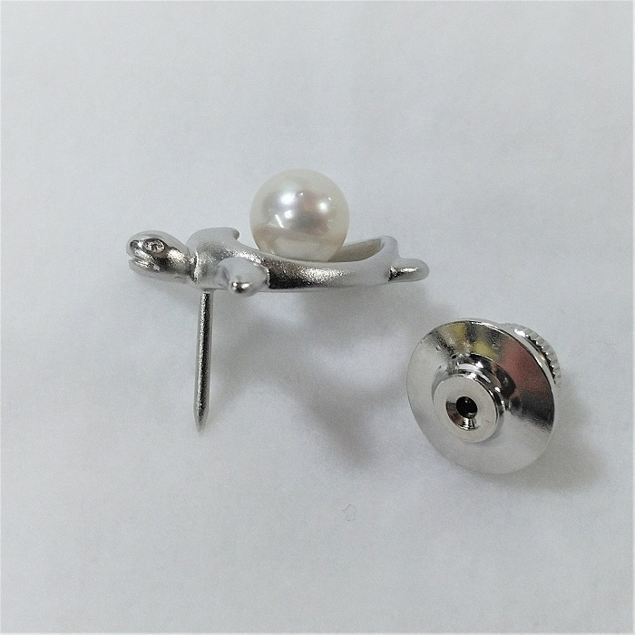幸せを運んできてくれるかも。うみがめのピンブローチです。 10-63伊勢志摩あこや本真珠ブローチピン(うみがめ)