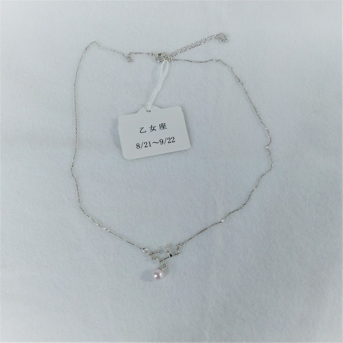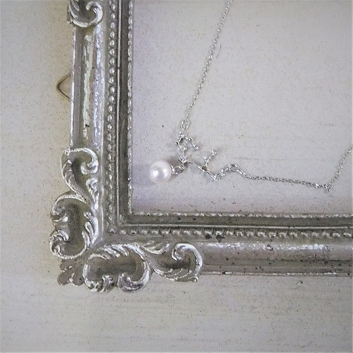 小ぶりのあこや本真珠を1珠あしらった星座のネックレスです。贈り物にもいいですよ。 50-43伊勢志摩あこや本真珠ネックレス・星座(おとめ座)