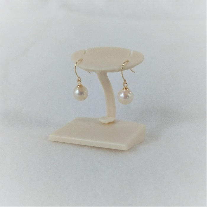 ちょっと目立つ、えくぼやでっぱり、色やテリのむら、しわなどがあり、テリも少し弱い、高級なフォーマルネックレスには、使えない真珠たち。でも、養殖業者さんが、我が子のように一生懸命大切に育てた、真珠です。何とか皆さんに、使っていただけたらと思い、フックタイプのピアスにしました。訳ありあこや本真珠ですので、左右で、形(基本的には、ドロップ)や大きさ、お色が違います。なるべくバランス良くペアをつくったつもりです。使用する真珠のサンプル画像をよくご確認の上、ご寄附下さい。パーツとの接合具合が良くなるように、真珠のでっぱり(尖った部分)を少し、削って、調整してあります。ご了承ください。パーツ、金具は、K18です。真珠は、横の大きさが、約6.0㎜~約6.9㎜です。