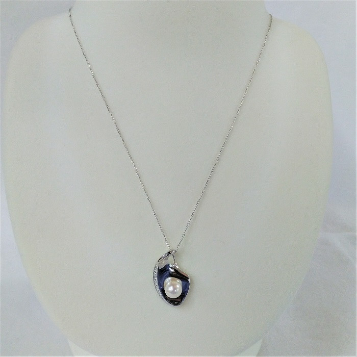 7.0㎜のラウンド・セミラウンドのあこや本真珠1珠のSV製ペンダントです。一部が鏡面仕上げになっていてピカピカしています。落ち着いたデザインの普段使いのペンダントです。ペンダントの大きさは、約17㎜×約25㎜です。約45㎝のシルバー製チェーンをおつけしました。ペンダントとチェーンには、ロジウム加工がしてあります。