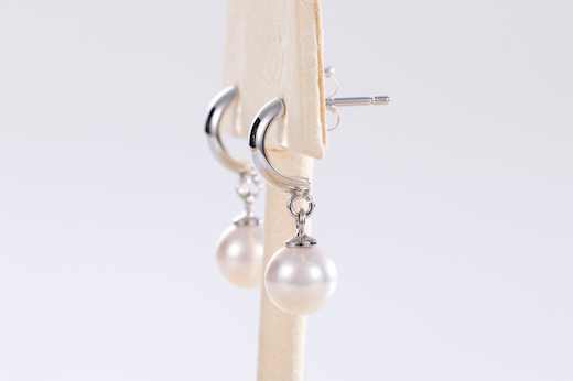 シンプルなデザインと耳元で揺れるパールがお顔に映えます。