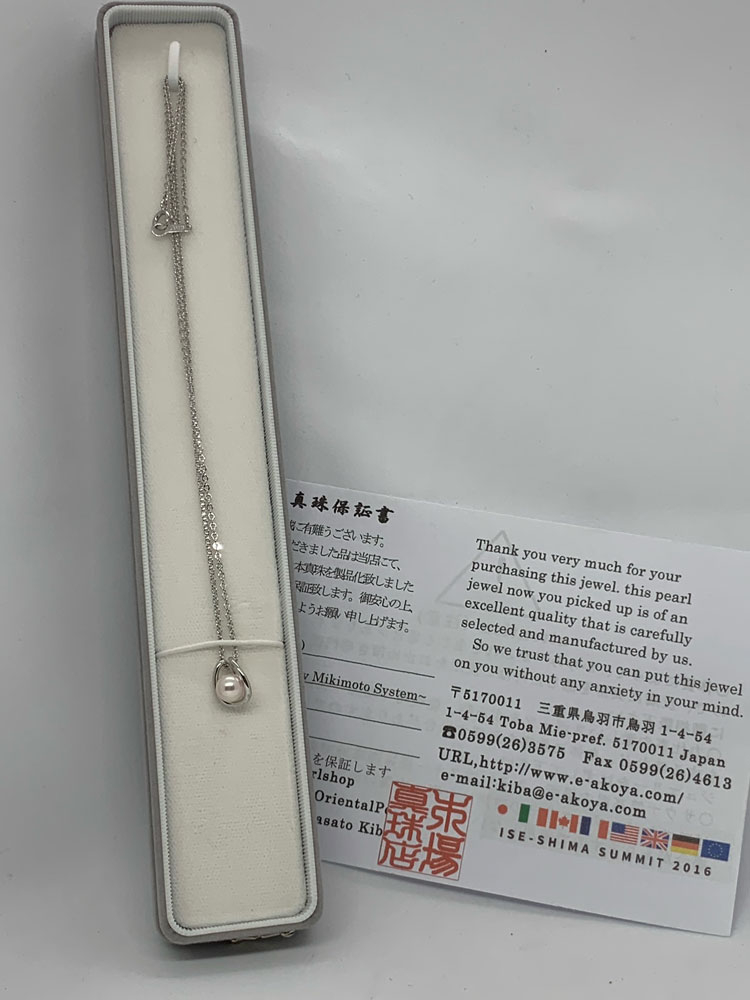 三重県伊勢志摩の英虞湾であこや⾙にて養殖・生成された6.0mm真珠のペンダントです。