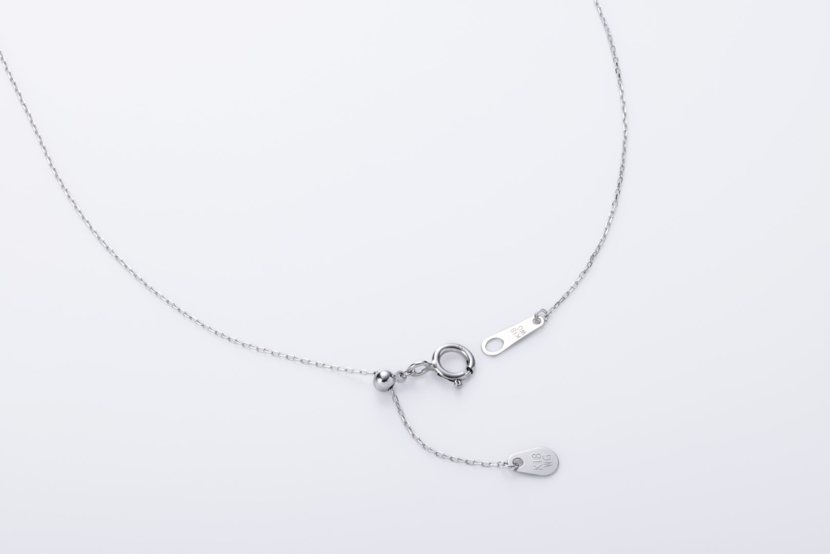 金具を一切使わず真珠にホワイトゴールドチェーンを直接通すことにより、