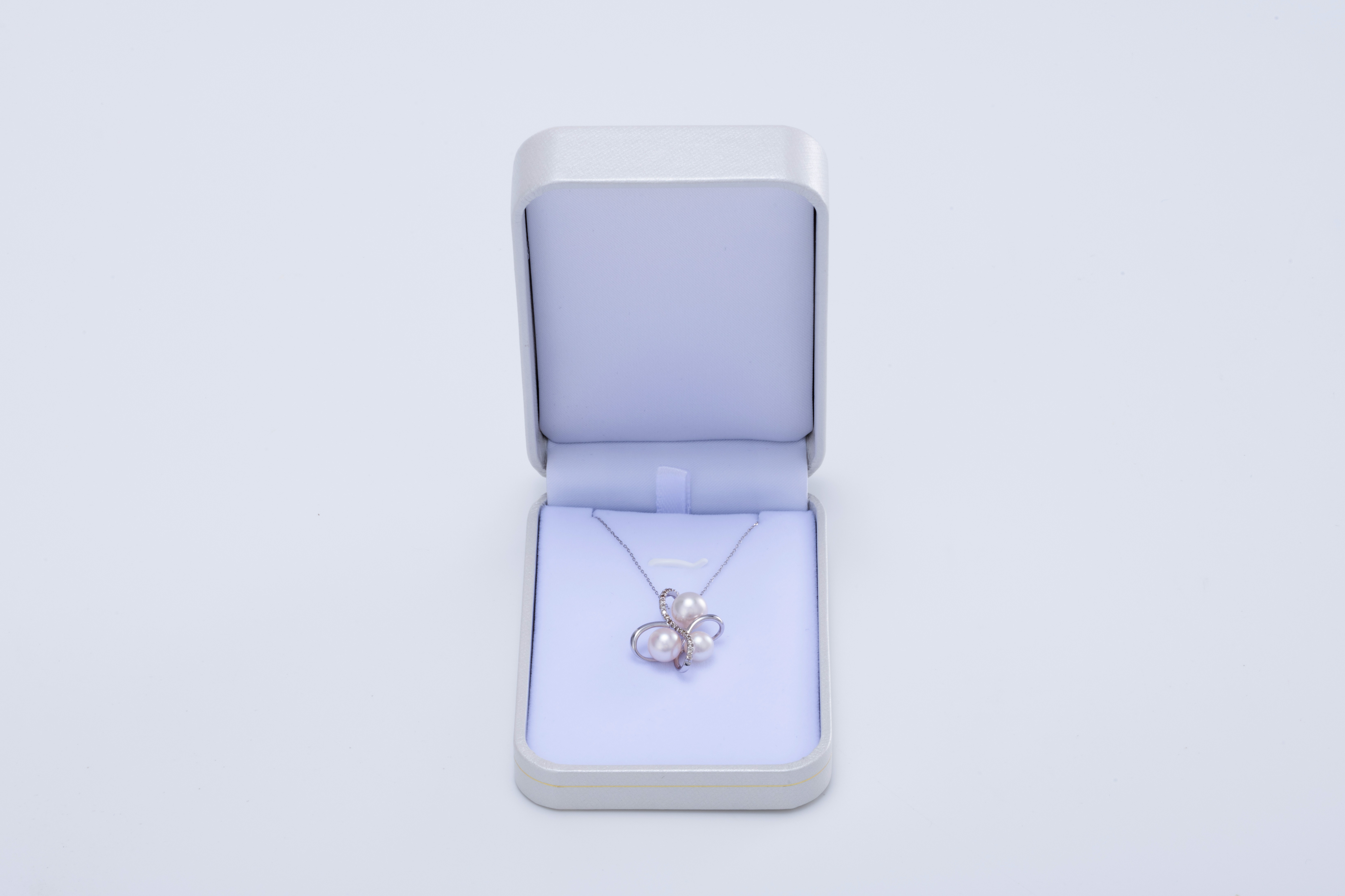 あこや真珠約6.5~8.0mmのK18製ペンダント。艶やかなあこや真珠とともにセッティングされたダイヤモンドが華を添えるペンダントです。