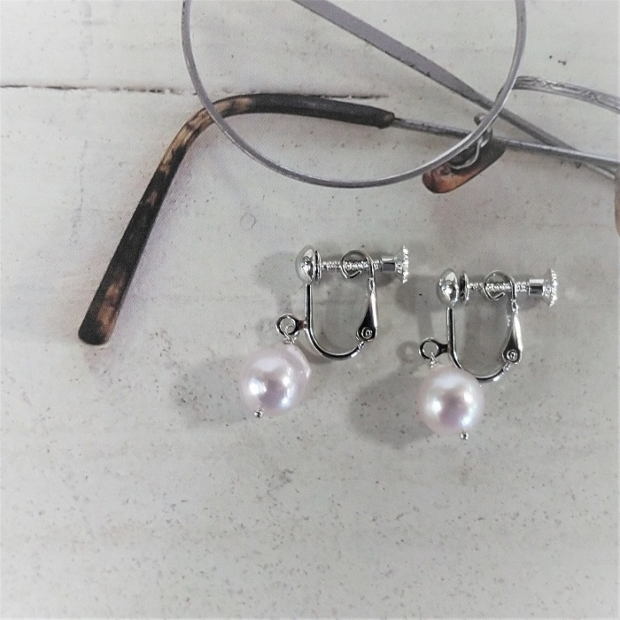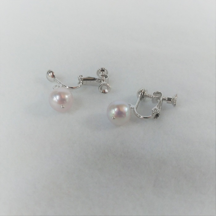 ちょっと目立つ、えくぼやでっぱり、色やテリのむら、しわなどがある、両穴のホワイトピンク系あこや本真珠バロックです。ある程度、テリはありますが、バロックパールなので、ひと珠、ひと珠、形や大きさ、お色が違います。真珠の大きさは、8.0㎜~8.5㎜ですが、バロックパールですので、測定箇所によって、サイズが異なります。使用する予定のバロックパールの見本の画像がありますので、しっかりと、ご確認ください。できるだけ、バランスの整ったペアを選んで、おつくりさせていただきます。シルバー製のネジバネ式のイヤリングです。両穴のバロックパールなので、シルバー製の丸ピンでめがね留めにいたしました。
