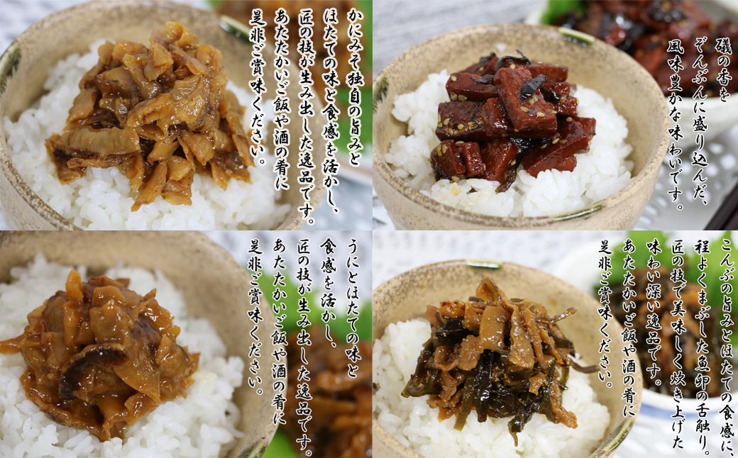 ご飯のお供に、お酒のお供に、日常の常備用にも。 15-22お酒やご飯のお供に 佃煮 4種類セット