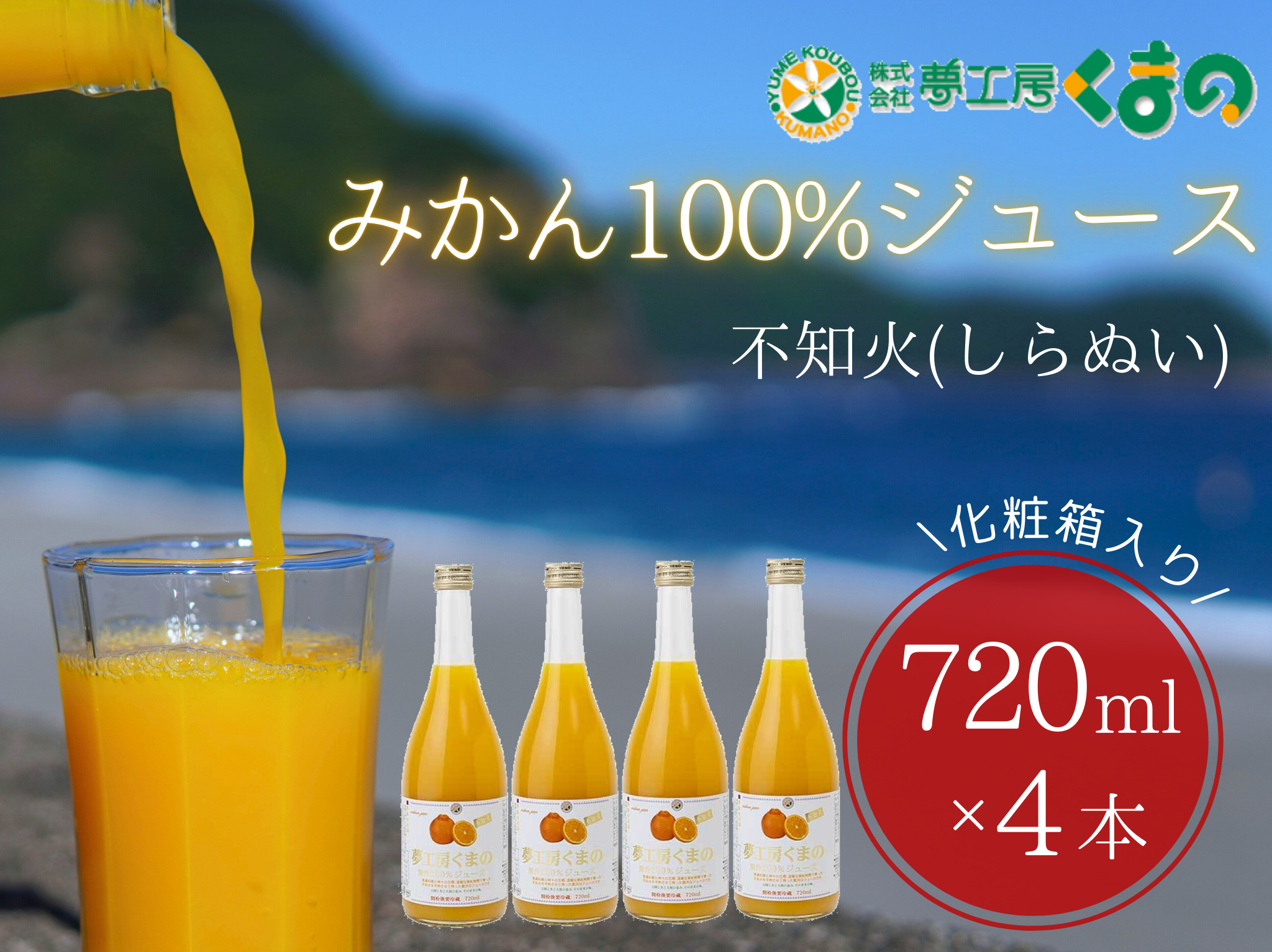 濃厚で贅沢な味わい…♪ みかんジュース 「糖度14度以上【不知火(しらぬい)ストレートジュース】720ml×4本(2本×2箱) 化粧箱 みかん 100% オレンジジュース ギフト プレゼント 贈答用 三重県 熊野市【kmkn0085】