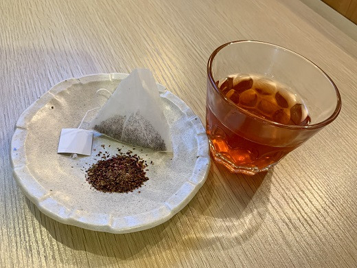 【原材料】 【朝起茶】ローズヒップ(南アフリカ)、ルイボス(南アフリカ)、新姫果皮(三重県熊野市産)、ハイビスカス、ローズレッド |