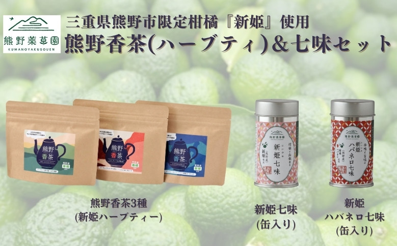 熊野香茶&七味セット(ハーブティー3種、新姫七味、ハバネロ七…