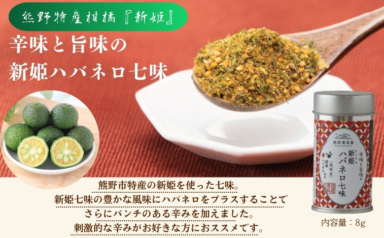熊野市特産のハバネロと七味を入れた辛味の中に旨味のある七味です。