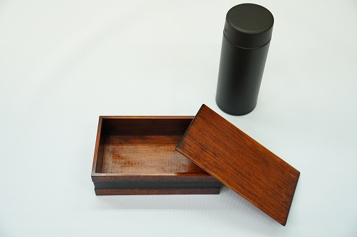 指物(さしもの)によるヒノキのお弁当箱です。拭漆(ふきうるし)加工をしております。