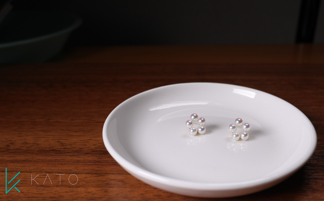 何かと緊張する場面の多い現代、「愛でる真珠」があなたを“ほっこり”癒やします。 「愛でる真珠」を手のひらで転がすと、まるで赤ちゃんの肌の様なきめ細かな表面、光の干渉により現れる薄紅色や緑色の色目と有機質の温もりが、愛でる人を癒やします。 「愛でる真珠」のあこや真珠は? 今から半世紀前の昭和40年代に真珠職人たちは、「真円ではない」、「キズがある」というだけで、「色・照り・巻き・面」が高品質なのに、評価(価格)の落ちる珠を「自分の誇り」として、穴を空けず、加工も行わず、貝から取り出したままで、大切に保管してきました。 その稀少性の高い「あこや真珠」を、ここ数年の原因不明の「あこや貝の大量斃死」で苦しむ現代の真珠職人の助けになれば!ということで、市場に出してくれた、あこや真珠です。 器の文様の青海波(せいかいは)は、広い海がもたらす恩恵を感じさせる柄で、無限に広がる波の文様に未来永劫へと続く幸せの願いと、人々の平安な暮らしへの願いが込められた縁起の良い柄です 。 柔らかい輝きの「白・金」、落ち着いた輝きの「白・白」の2タイプご用意しました。ご注文時にお好きなタイプをご指定下さい。 環境に配慮した紙製専用パッケージにて、お届けさせていただきます。 自然の中で「あこや貝」と「職人」が生み出す「あこや真珠」は色・形・光沢・巻き厚が均一ではありません。また、あこや貝の体内で出来てしまった「キズ」や「エクボ」は、それ以上劣化することもありません。ご愛用者様に長くお使いいただけるよう、パールの真珠層の「巻き厚」にこだわった真珠を選んでいます。 ※到着希望日がある方は、ご入力ください。ご希望日の入力がない方は、順次発送します。(振込用紙払の場合、振込から入金確認まで10日程かかりますので、余裕のある日程をご指定ください。変更をお願いする場合もあります。) 事業者 有限会社 加藤商会 E-mail info@kato1970.co.jp 連絡先 0599-43-0782 HP ttp://www.kato1970.co.jp/