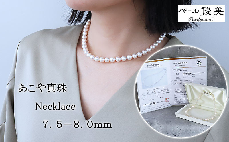 パール優美 真珠 あこや 本真珠 ネックレス7.5-8.0mm 42cm パール アクセサリー ジュエリー 三重県 伊勢 志摩 志摩市 鳥羽 鳥羽市 冠婚葬祭 慶事 弔事 結婚式 入学式 母の日 誕生日 記念日 クリスマス バレンタインデー ホワイトデー プレゼント カジュアル シンプル フォーマル