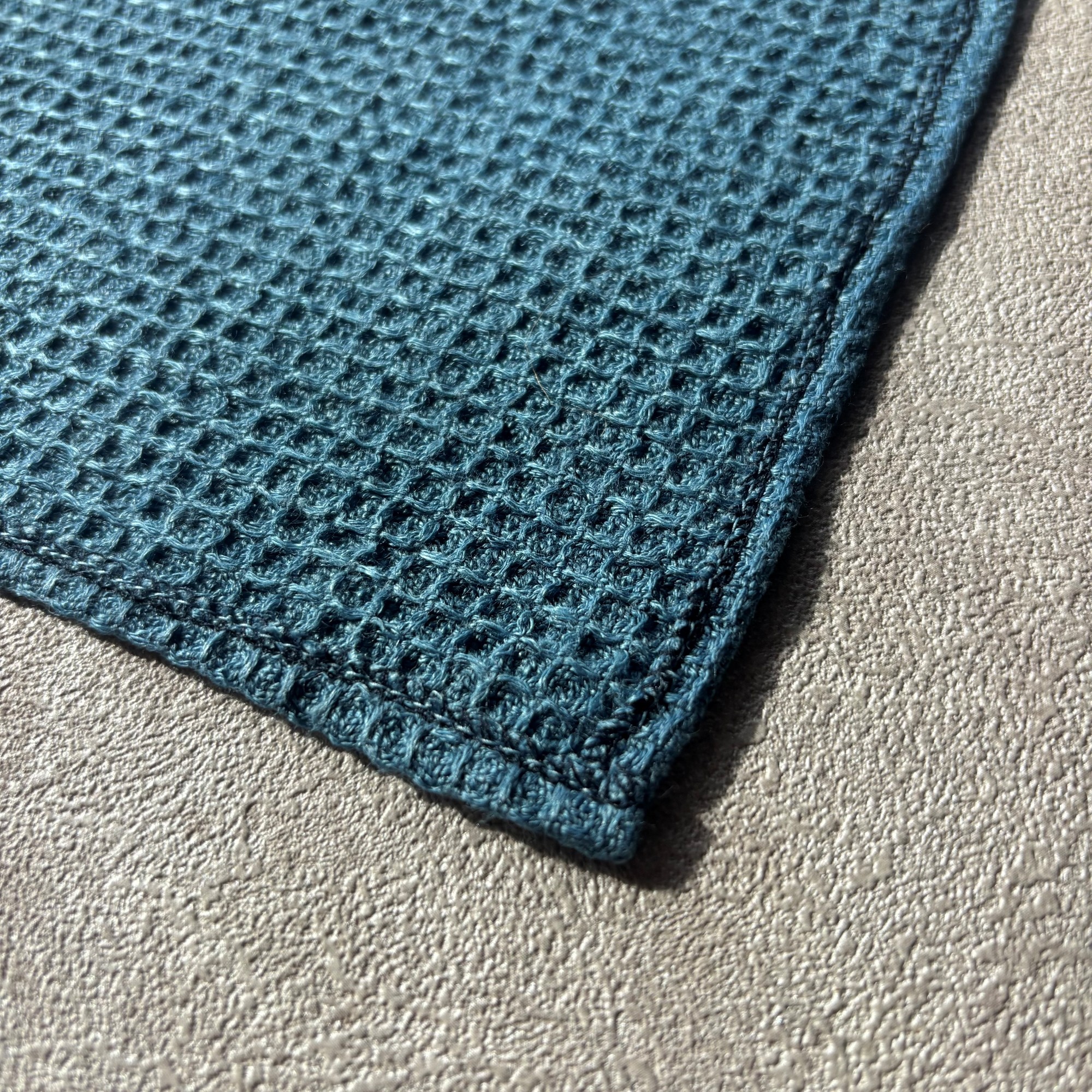 3本糸の撚り合わせで構成された生地が特徴のリネン100%のワッフル生地を使用したハンカチ。