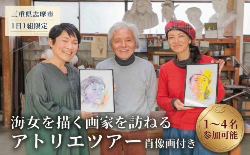 1日1組限定 貸切 特別体験 旅行 観光 プライベートツアー 似顔絵 ツアー アトリエ 芸術 アート 海女 文化 アトリエ見学 体験 銅版画 伊勢志摩 観光 芸術家 吉田賢治 銅版画家 肖像画 三重県 志摩市 伊勢志摩 いせ しま
