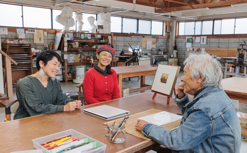 伊勢志摩国立公園の海辺近くにアトリエを構え、30年に渡り志摩半島で海女を題材にした銅版画作品を作成する画家 吉田賢治のアトリエを訪ねる完全貸切のプライベートツアー。