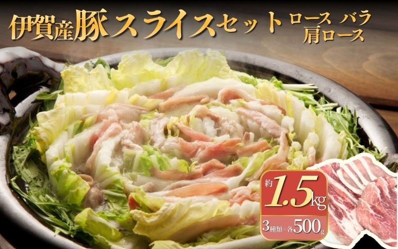 伊賀産 豚スライスセット(ロース、肩ロース、バラ)約1.5kg