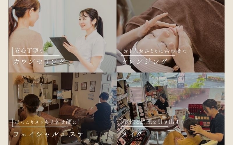 伊賀の山々と澄んだ空気の中、ストレスや疲れで凝った顔をほぐし、手では取れないお肌の汚れを弾き飛ばし、淀んだリンパを流す癒しのエステです。スキンスクライバー、超音波、エレクトロポレーションを使用。クレンジングはお1人おひとりに合わせてメンテナンス。ハンドでのマッサージ、パックも入ります。その後は、個性と綺麗を引き出すメイクで変身していただきます。創業1934年。3代目。常に技術を更新し続けるスタッフが担当させていただきます。カウンセリング10分、フェイシャルエステ55分、メイク30分、合計95分。
