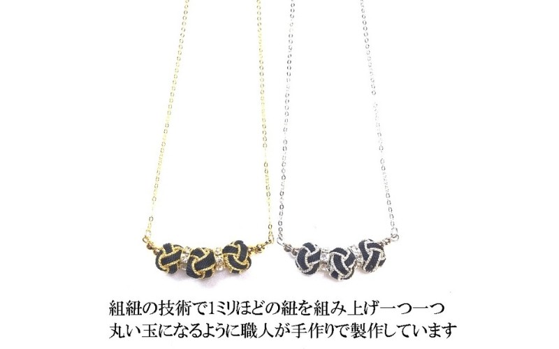 【伊賀組紐】ネックレス ミニ小田巻3個付 黒金銀【hrkz0020】