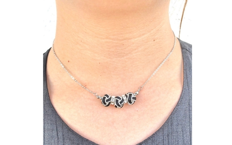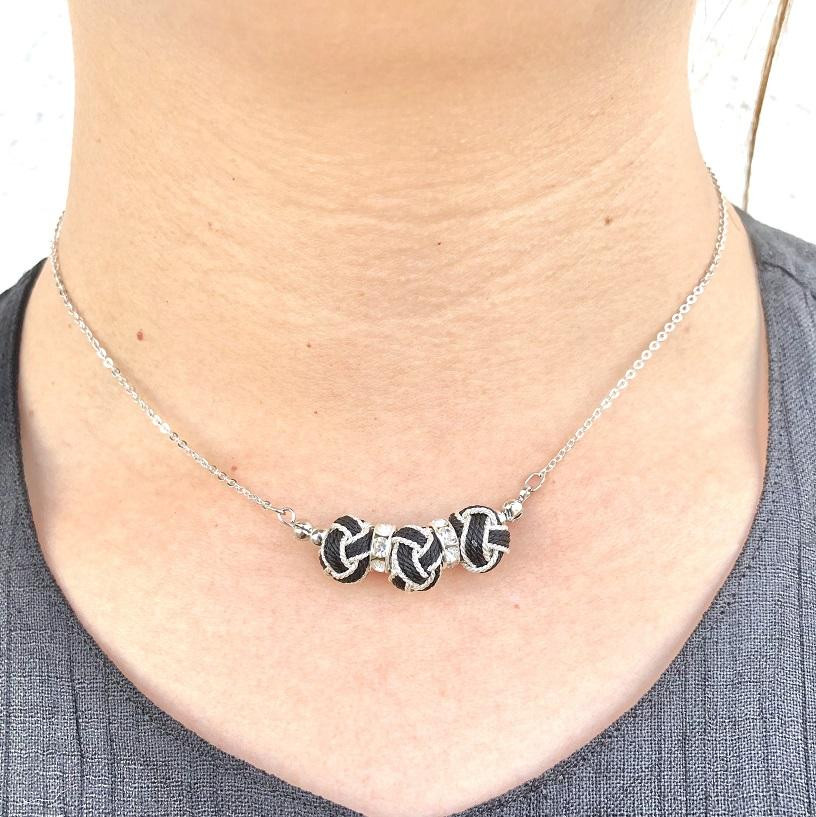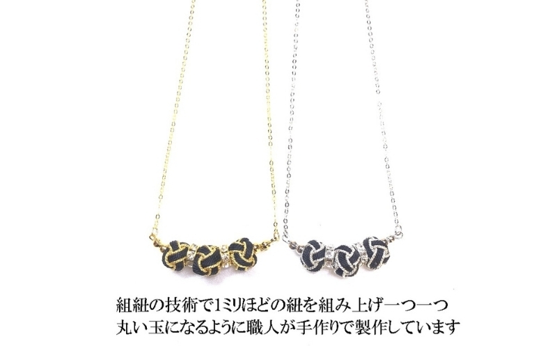 組紐ネックレスミニ小田巻3個黒銀【hrkz0020-2】