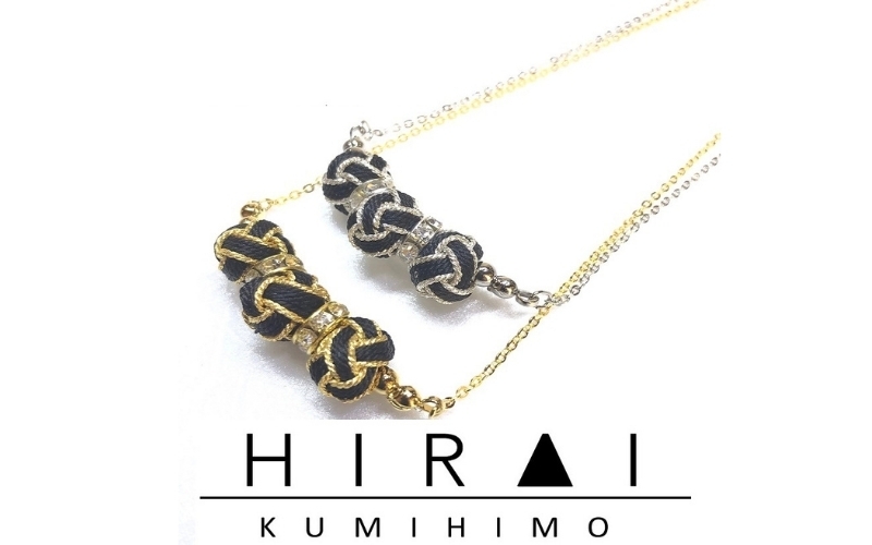 組紐の技術で約1mmの細い紐を作り、一つ一つ手作りで小田巻(丸い玉)を作りました。とても軽く、色合いも黒金、黒銀は服装を選ばず、様々な場面に活躍すること間違いない商品です。