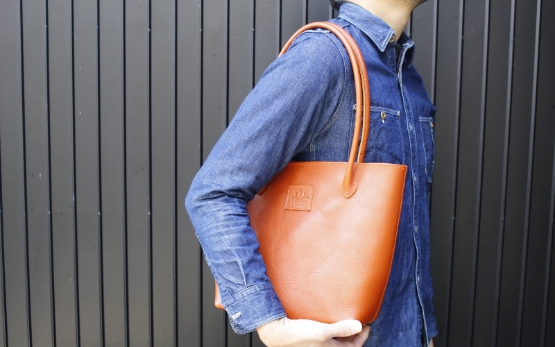 本体・持ち手ともにイタリア産タンニン鞣し革を採用。革表面に天然の細かいシボ(しわ)が入るライトシュリンク革は、手触りが滑らかで柔軟性があります。また、革の厚さは2mmで、しっかりとした重厚感も感じて頂けます。