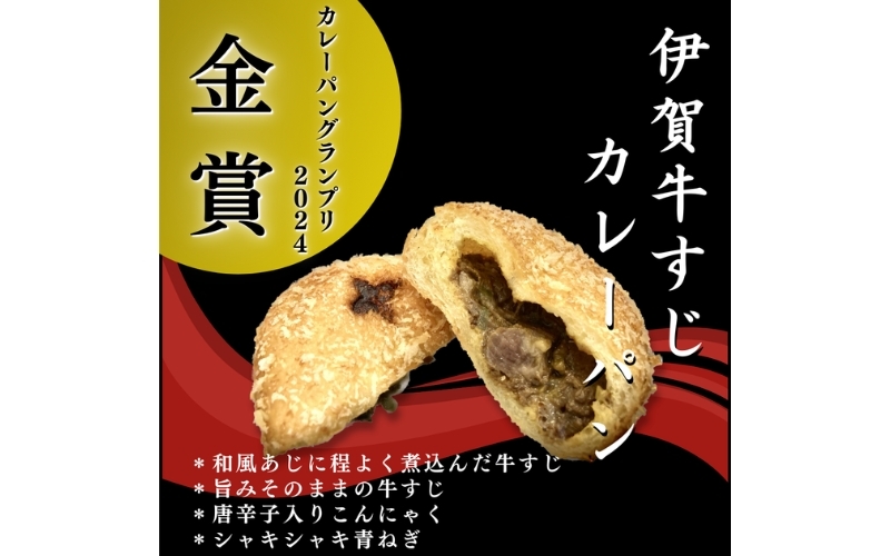 カレーパングランプリ2023金賞受賞の「ラッキー★カレーパン」、2024金賞受賞の「伊賀牛すじカレーパン」、それと並んで人気の「忍者カレーパン赤影」の3種の絶品カレーパンが楽しめるセットです。