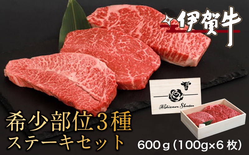伊賀希少部位3種ステーキセット 600g(100g×6枚)【nzst0010】