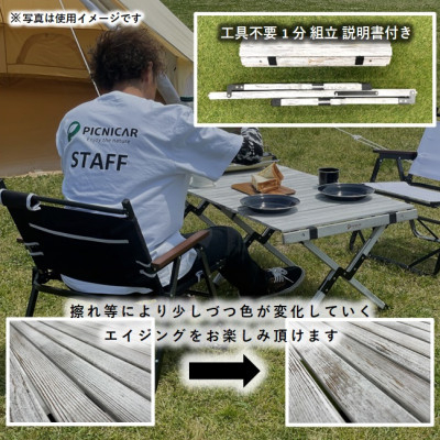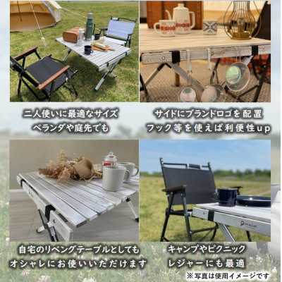 キャンプやピクニック、BBQ、室内での使用にもピッタリな折り畳み式のテーブルです。