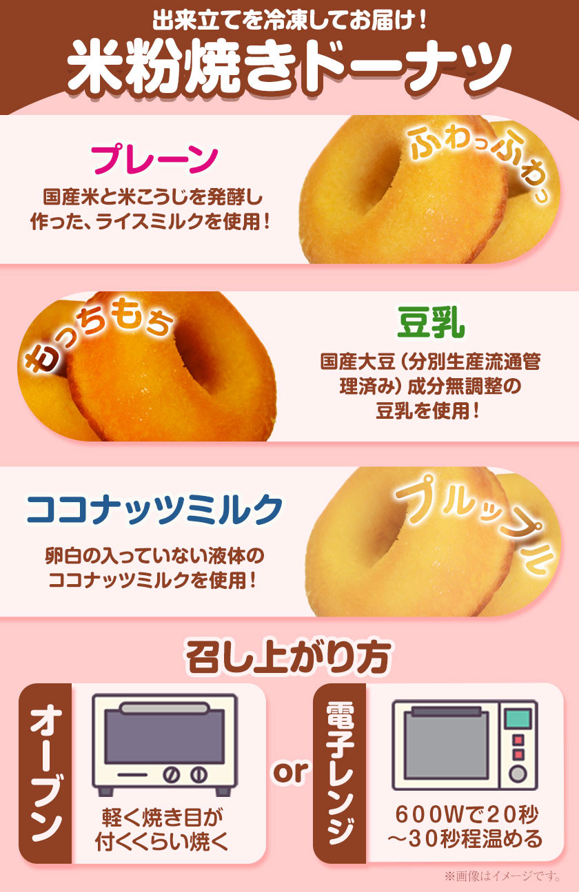 原材料:米粉・米油・きび砂糖・液体塩こうじ・ベーキングパウダー・ (プレーン味)ライスミルク・ (豆乳味)豆乳・ (ココナッツミルク味)ココナッツミルク