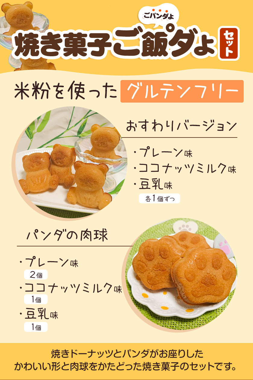 商品情報:米粉焼きドーナッツ(3個)焼き菓子ご飯°ダよ【ごパンダよ】(7個)の詰め合わせセット