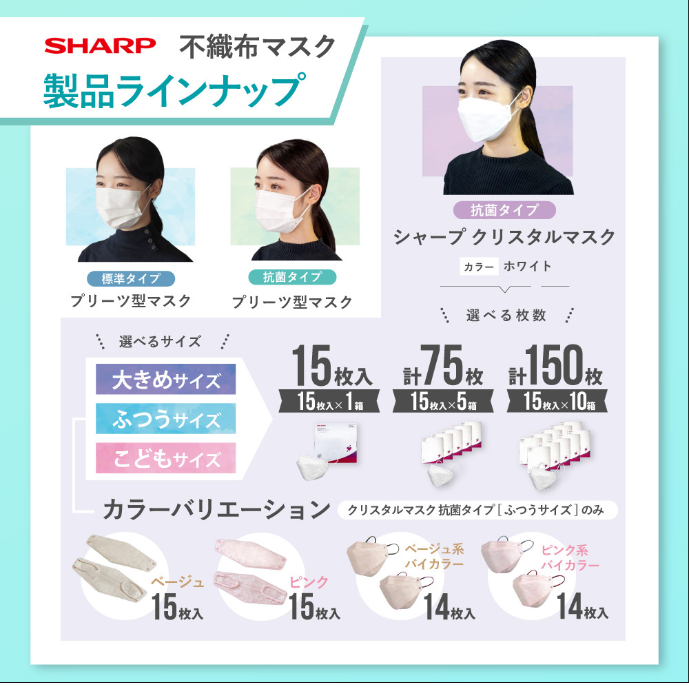 シャープ三重工場のクリーンルームで生産された高性能でつけごこちが自慢の国産マスク