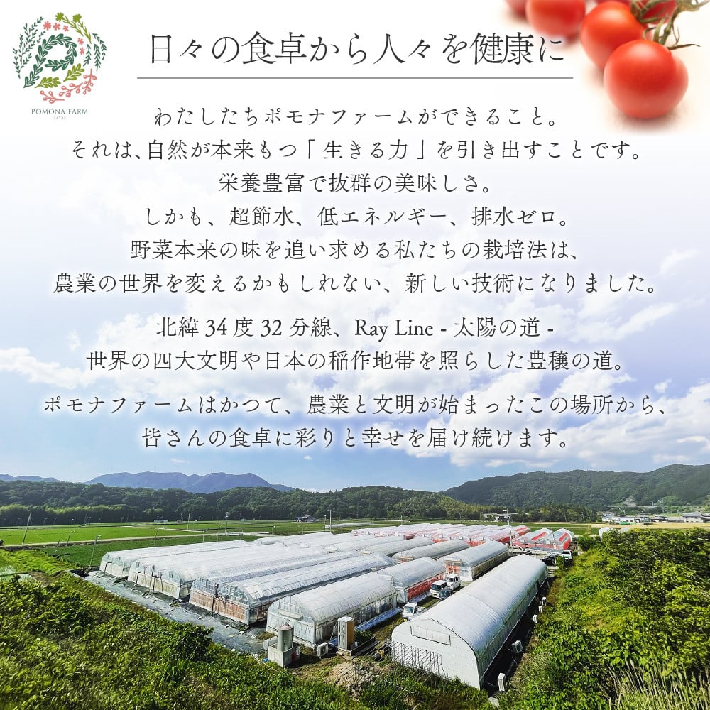 ポモナファームは、超節水、低エネルギー、排水ゼロを実現可能とし、野菜の本来のおいしさや栄養素を引き出す「湿度」で育てる特許栽培技術「Moisculture(モイスカルチャー)」を活用した通年栽培を 2017年の設立当時から継続しています。