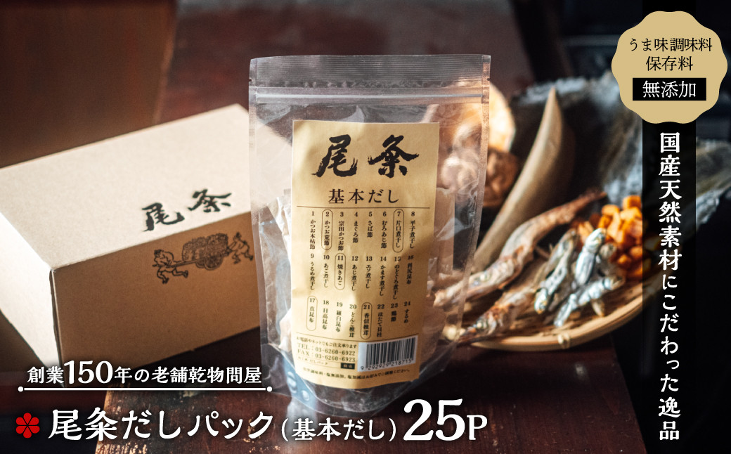 | 容量 | 尾粂だしパック(基本だし)25パック(1パック約7g) |