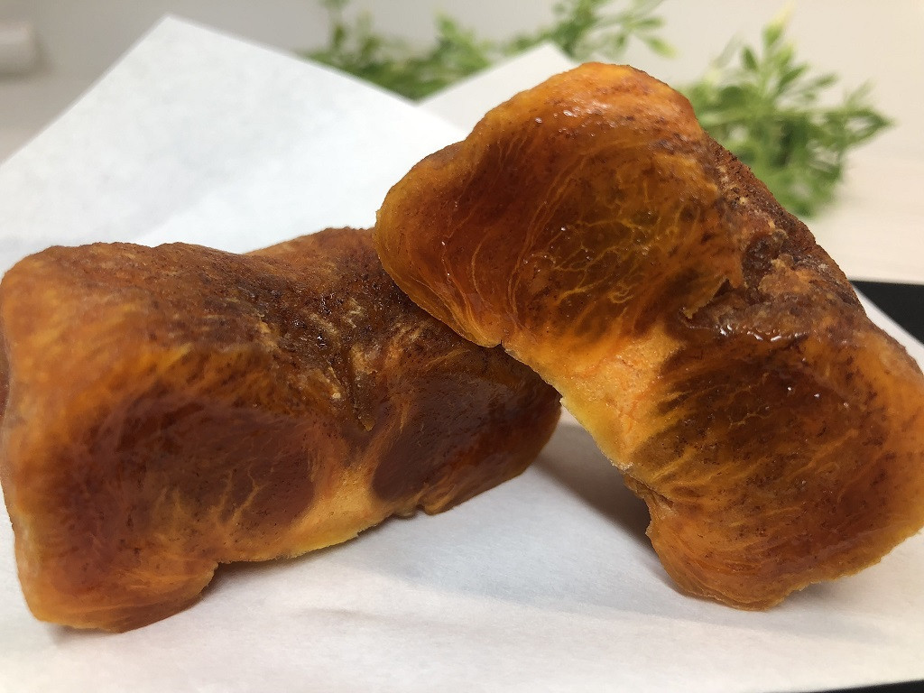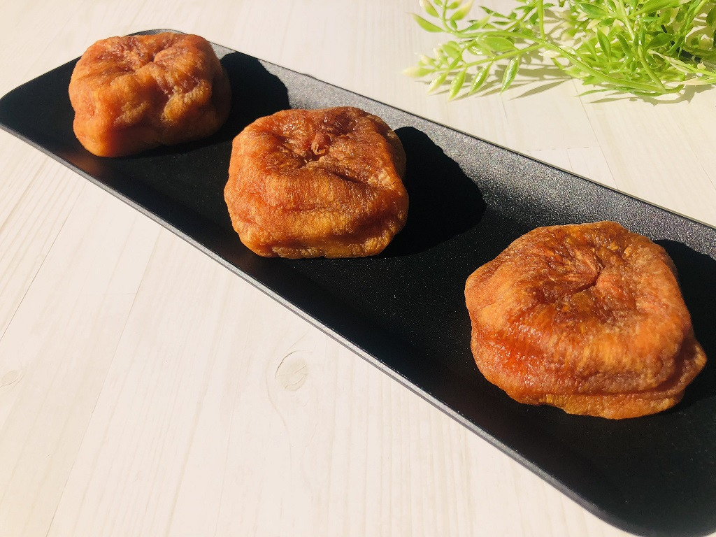 多気町産次郎柿の出荷できないキズ柿をひとつひとつ大切に乾燥させました。もともと完全甘柿の次郎柿ですが、乾燥させることで、長くお楽しみいただくことができます。干し柿は水分が抜かれるため、糖分が濃縮され、カロリーや糖質、食物繊維が高くなるとされています。おやつにも、ビタミンC補給にも多気町産次郎柿の干し柿はいかがでしょうか?