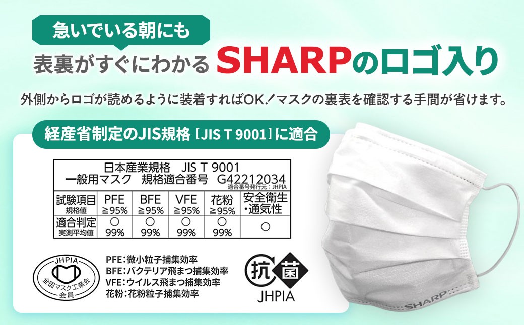 シャープ製 抗菌タイプ 不織布マスク ふつう・小さめサイズ 30…