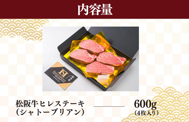 | 容量 | 松阪牛ヒレステーキ(シャトーブリアン)4枚入り600g(約150g×4枚入) |