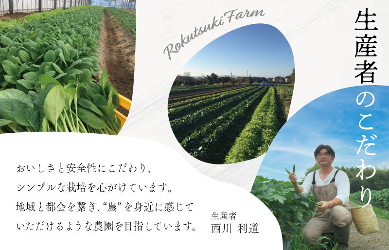 六月農園では、西川利道さんが少量・多品種の野菜を無農薬・化学肥料不使用で育てています。