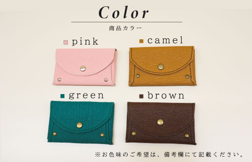 5×9cmのサイズのカードや名刺がすっぽり入ります。 名刺であれば、25枚ほどが収納可能となっています。 薄くてかさばらない、重さはわずか約18g。 プレゼントにも喜ばれる一品です。 三重県指定伝統工芸品に認定された「伊勢擬革紙」。 「擬革紙(ぎかくし)」とは、和紙にしわや文様を付けて、革に似せた風合いと着色を施したもので、伊勢の代表的なお土産でした。 江戸時代に、長崎を通じてヨーロッパから輸入された革製品を模造し油紙を加工して煙草入れとして販売されたのがはじまりだと伝えられています。 一度は途絶えた伝統であったが現在、「参宮ブランド擬革紙の会」を立ち上げ伝統工芸技術の復興に向けて奮闘中。 【サイズ】 65mm×105mm 厚み15mm 重さ約18g 【色】 ブラウン・キャメル・グリーン・ピンク ※お好みの色をお選びください。(指定がない場合、カラーはお任せとなります) ※写真はイメージです。(裏布・ステッチ糸の色および絞り加工の種類はお任せとなります) 【注意事項】 ※手作り商品のため見本と若干色や絞り状態が異なる場合があります。 ※あくまで紙製品ですので、外出時や保管等の取扱には充分ご注意ください。 (革製品と同じようなお手入れをしてください。) 【関連キーワード】 ビィーガンレザー 国産 細工 アクセサリー 小物 手作り ギフト お祝い 名刺入れ カードケース A 擬革紙 和紙 伝統工芸 伊勢 三重県 赤 緑 こげ茶 65mm×105mm 参宮ブランド擬革紙の会 明和町