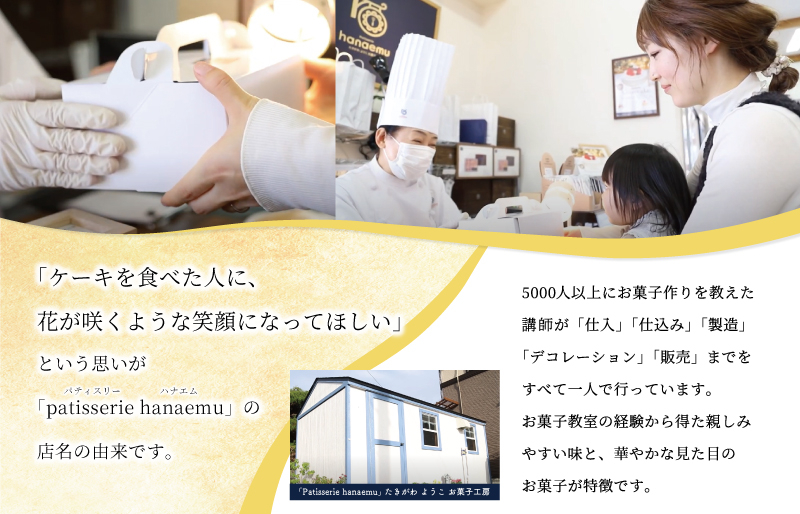 『ケーキを食べた人に、花が咲くような笑顔になってほしい』という思いが『patisserie hanaemu』というお店の由来となっています。
