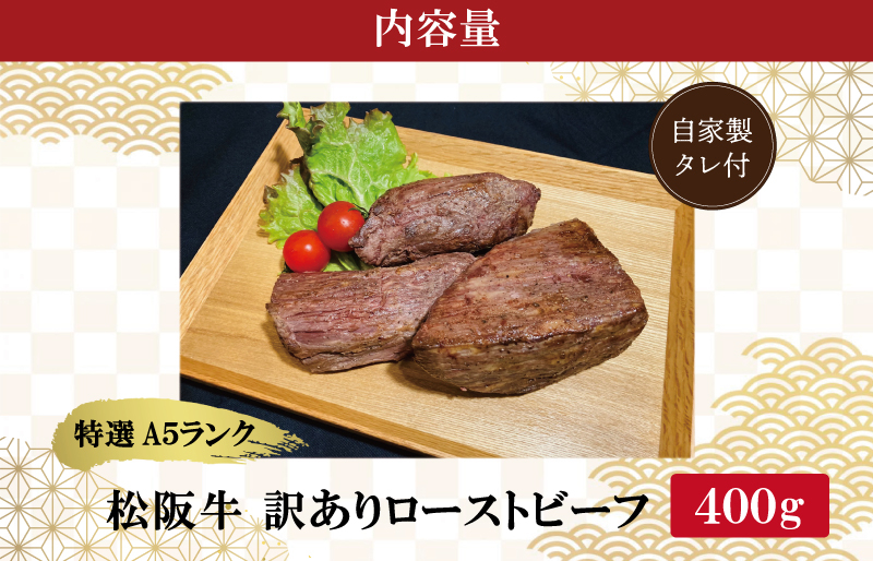松阪牛のうまみが凝縮されたローストビーフを是非ご賞味ください 特選A5 松阪牛 訳あり ローストビーフ 特製ソース付き(約400g)【焼肉和牛料理 金竹】お取り寄せ 送料無料 肉 牛 牛肉 和牛 ブランド牛 高級 国産 冷凍 人気 KT11