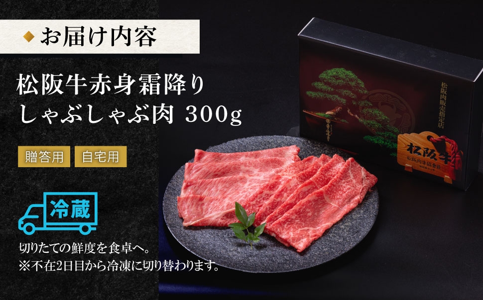 | 容量 | 松阪牛赤身と霜降りしゃぶしゃぶ 300g |