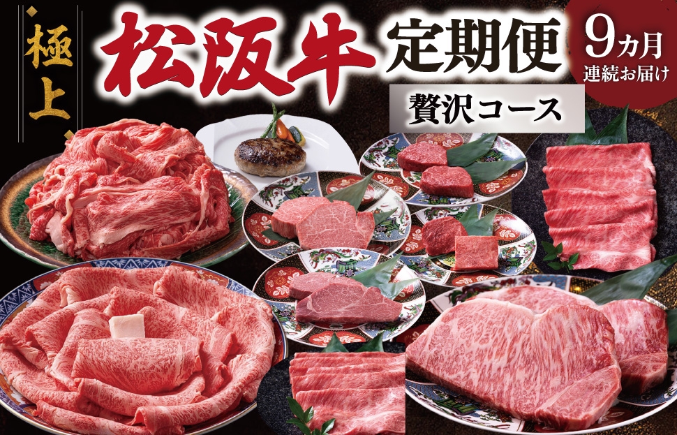 柔らかな肉質、とろける霜降り、甘く芳醇な香りが特徴の松阪牛を是非ご賞味ください。 極上 松阪牛 贅沢 コース 定期便 9か月 牛追道中 肉 牛 牛肉 和牛 ブランド牛 高級 国産 霜降り 冷凍 ヒレ シャトーブリアン 赤身 ハンバーグ リブロース サーロイン すき焼き しゃぶしゃぶ US33