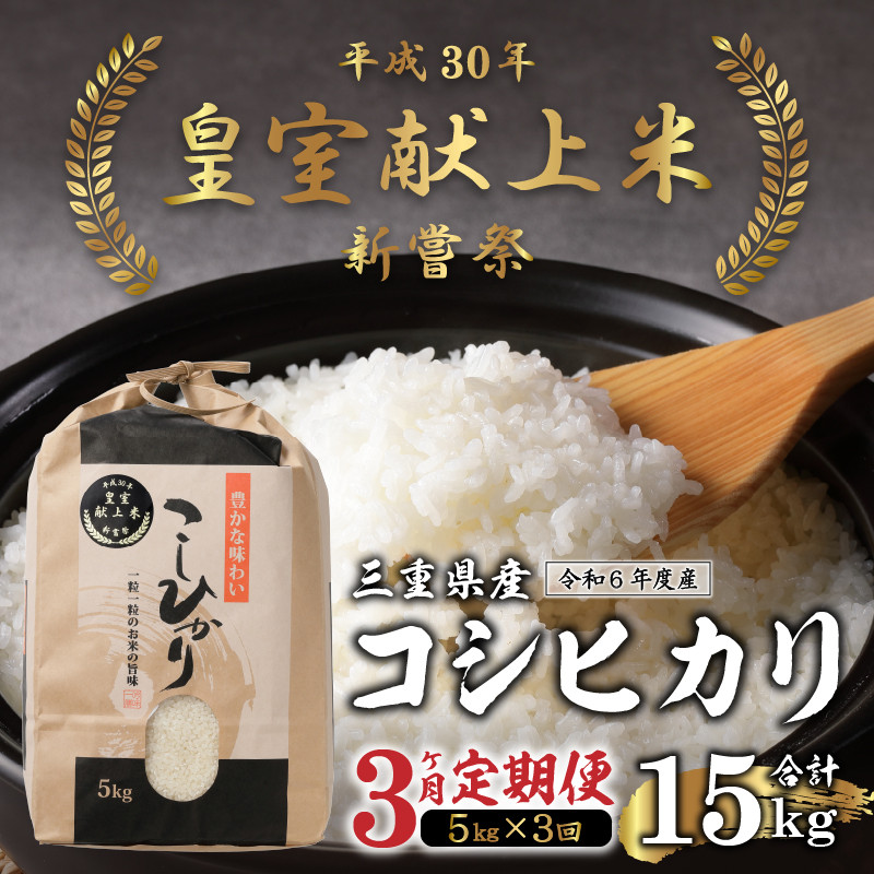 皇室献上米に選ばれる品質。玉城町のお米を是非お楽しみください。 【定期便】令和6年産米 三重県産コシヒカリ5kg×3ヶ月 新嘗祭皇室献上米農家