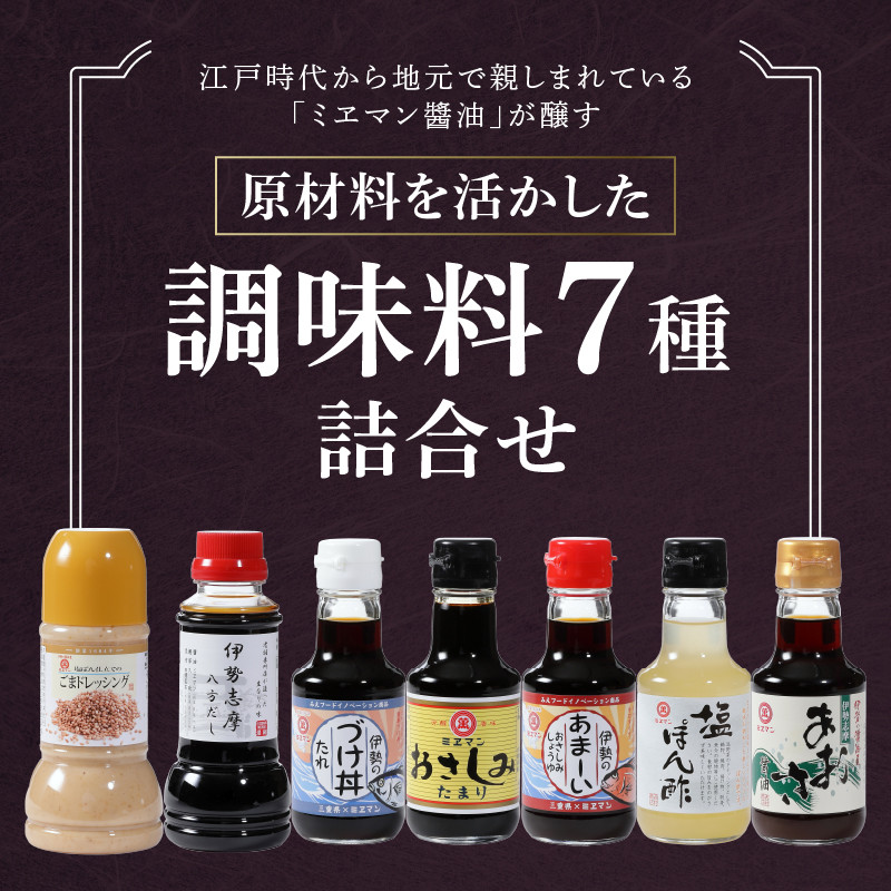 地元の方々に親しまれている醤油醸造元が醸す調味料セット 【2024年4月26日掲載終了】伊勢のこだわり調味料詰合せセット 7種