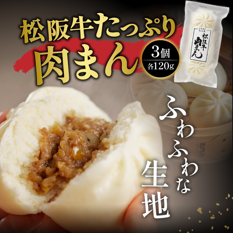松阪牛と白菜、玉ねぎ、白葱をいれた甘辛い具と、フワフワな生地で旨みたっぷりの肉まんです。