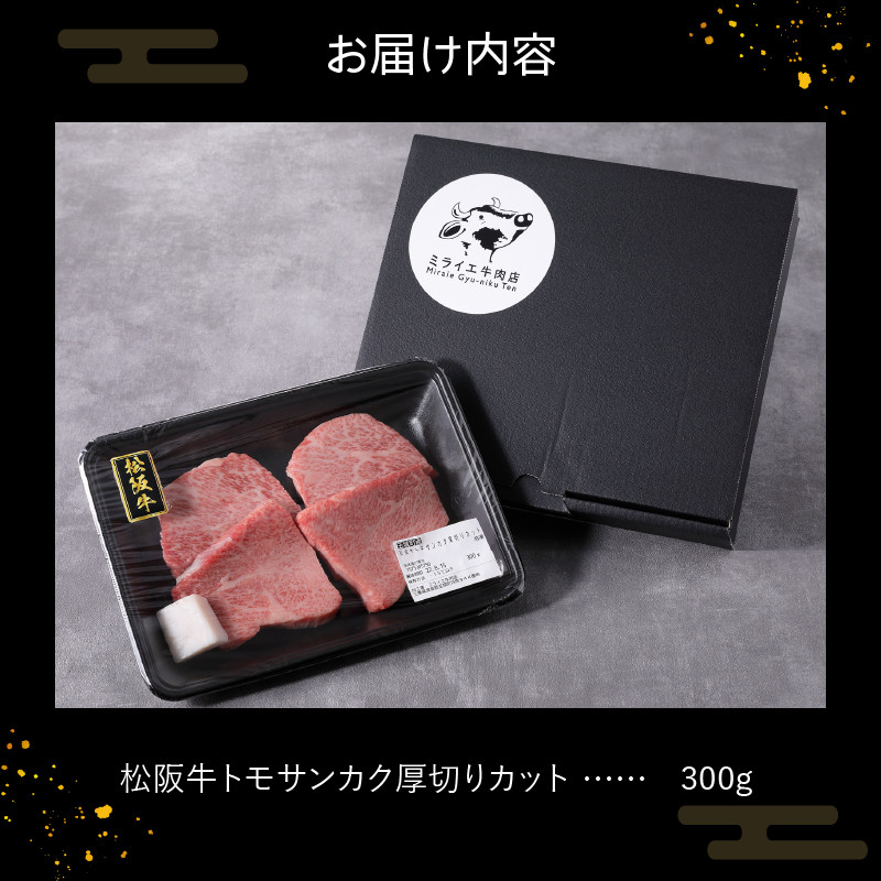 玉城町産 松阪牛トモサンカク厚切りカット 300g(松阪牛 国産 トモサンカク 厚切り トレイ入り 300g 霜降り 香り 甘み 舌触り 厳選 希少部位 牛肉 冷凍 ミライエ 小林牧場 誕生日 お祝い 記念日 家庭用 三重県 玉城町産)