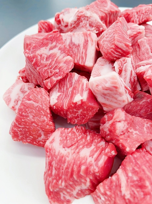 一口サイズにカットした赤身と脂身の旨みをご堪能いただけます。