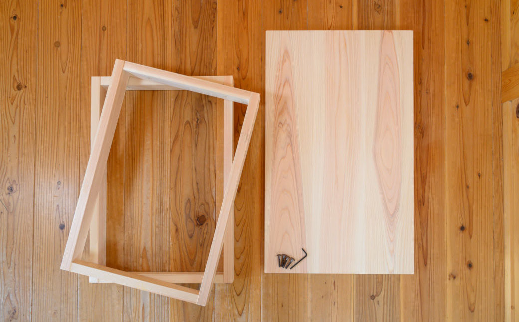 尾鷲ヒノキ製 木製のコンパクトな机です。 <DIYする木の机>「尾鷲ヒノキ香る ワークデスク」【EE06】