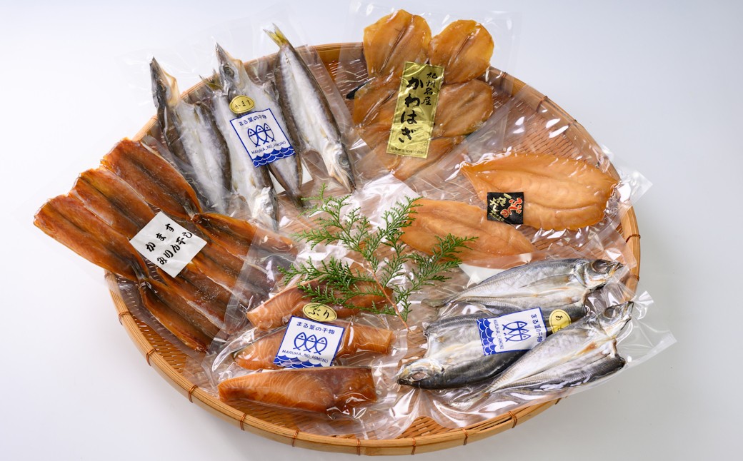 | 容量 | 【旬の干物6点】 ※海産まる葉が四季折々の干物の中から厳選し6品お送り致します。 ※干物の種類は指定できません。 ※干物の一例は下記をご確認ください。 〈お送りする干物の一例です〉 ●かます開き(3~4枚) ●かますみりん(4~5枚) ●かわはぎみりん(4~6枚) ●ふぐみりん(2~3枚) ●かます丸干し(6尾) ●ぶりみりん(3~5枚) |